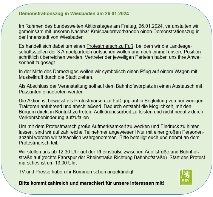 Am Mittwoch, dem 10.01.2024 haben sich die Landwirtschaftlichen Betriebe des Rheingau-Taunus-Kreises und viele ihnen sich zugehörig Fühlende zusammengetan und mit einer beeindruckenden Präsenz gezeigt, dass sie gemeinsam für ihre Sache einstehen.
